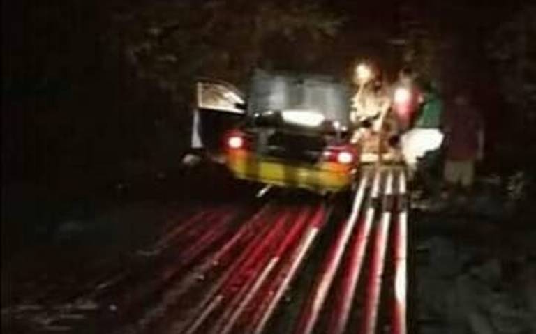 A través de redes sociales fueron difundidas imágenes donde el puente de tubos de la comunidad Cacao en Jalapa ha presentado severa separación, lo que causó que un transportista quedara atascado en medio de la infraestructura.