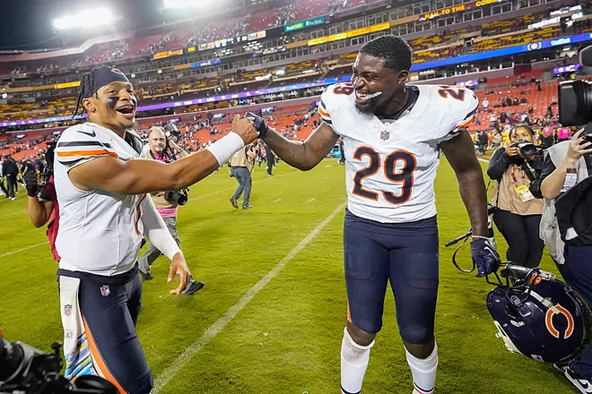 Fields tiró para 282 yardas y cuatro pases de anotación, además de no cometer errores, en una primera mitad donde los Bears anotaron 27 puntos y robaron dos balones a la ofensiva de Sam Howell, que despertó hasta el tercer cuarto y, aunque comenzaron a mover el balón, ya no les alcanzó para regresar.