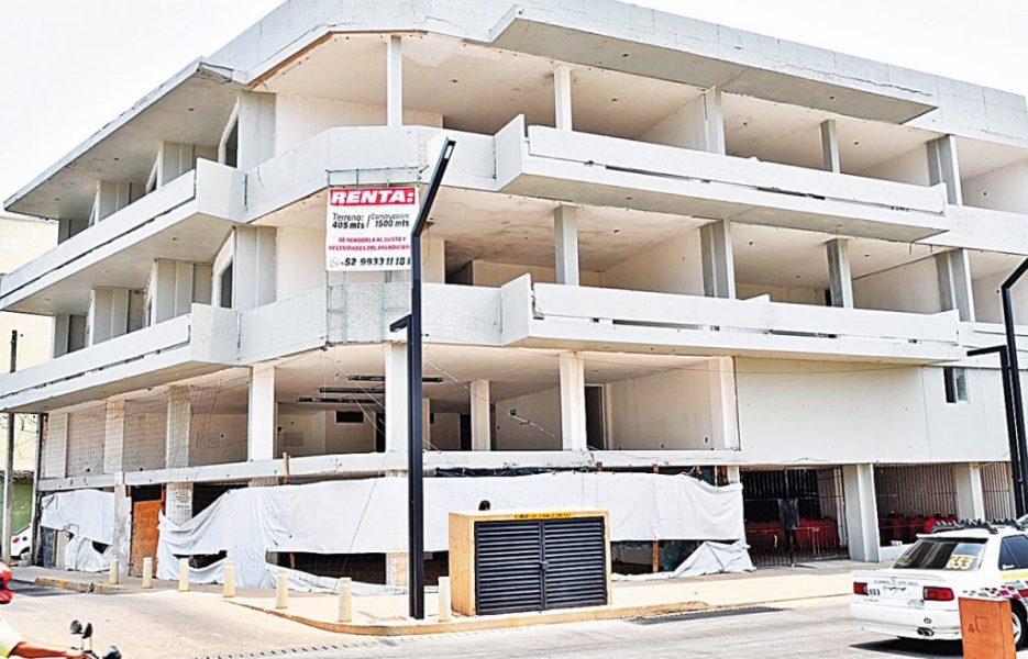 El Centro de Villahermosa, se hunde en la decadencia y el abandono. Más de 25 edificios en el Malecón Carlos A. Madrazo Becerra exhiben letreros de venta o renta, testigos mudos del desastre desde las inundaciones de 2007.